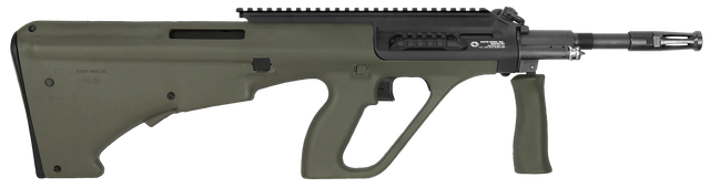 The iconic bullpup-style Steyr AUG has been one of the most recognizable rifles in the world since its adoption by the Austrian army in 1977 and is now available for civilian use as the Steyr AUG A3 M1. The short-stroke gas-piston operation of the AUG runs exceptionally cleaner by nature because all of the operational exhaust gas vents out of the front of the rifle. The AUG A3 M1 has all the classic features and benefits that established it as the pinnacle of modern rifle design. It also features a quick-change barrel with a collapsible forward grip as well as a two-position cross-bolt safety that locks the trigger.